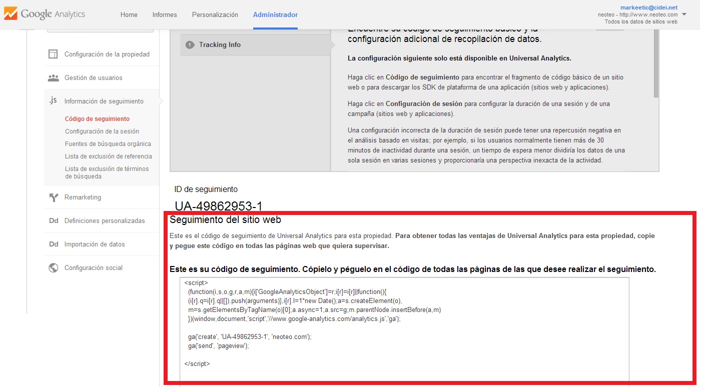 3.Copie el código de seguimiento y peguelo en el código fuente de su página web.